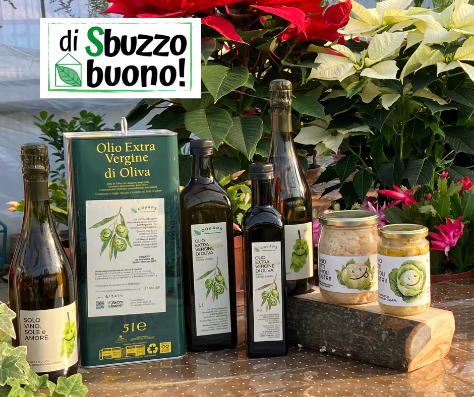 “Di Sbuzzo Buono!” è la linea di prodotti di COpAPS che racconta lo Sbuzzo – termine che in bolognese indica la creatività e la capacità di trovare soluzioni ingegnose – che si cela in tutto ciò che facciamo quando ci mettiamo d’impegno, o come si suol dire “di buzzo buono“. Con questa linea vogliamo raccontare di tutti i prodotti realizzati insieme ai nostri beneficiari, perché quando ci mettiamo di Sbuzzo buono siamo capaci di creare, con la nostra fatica, opere d’ingegno solidali e sostenibili.
